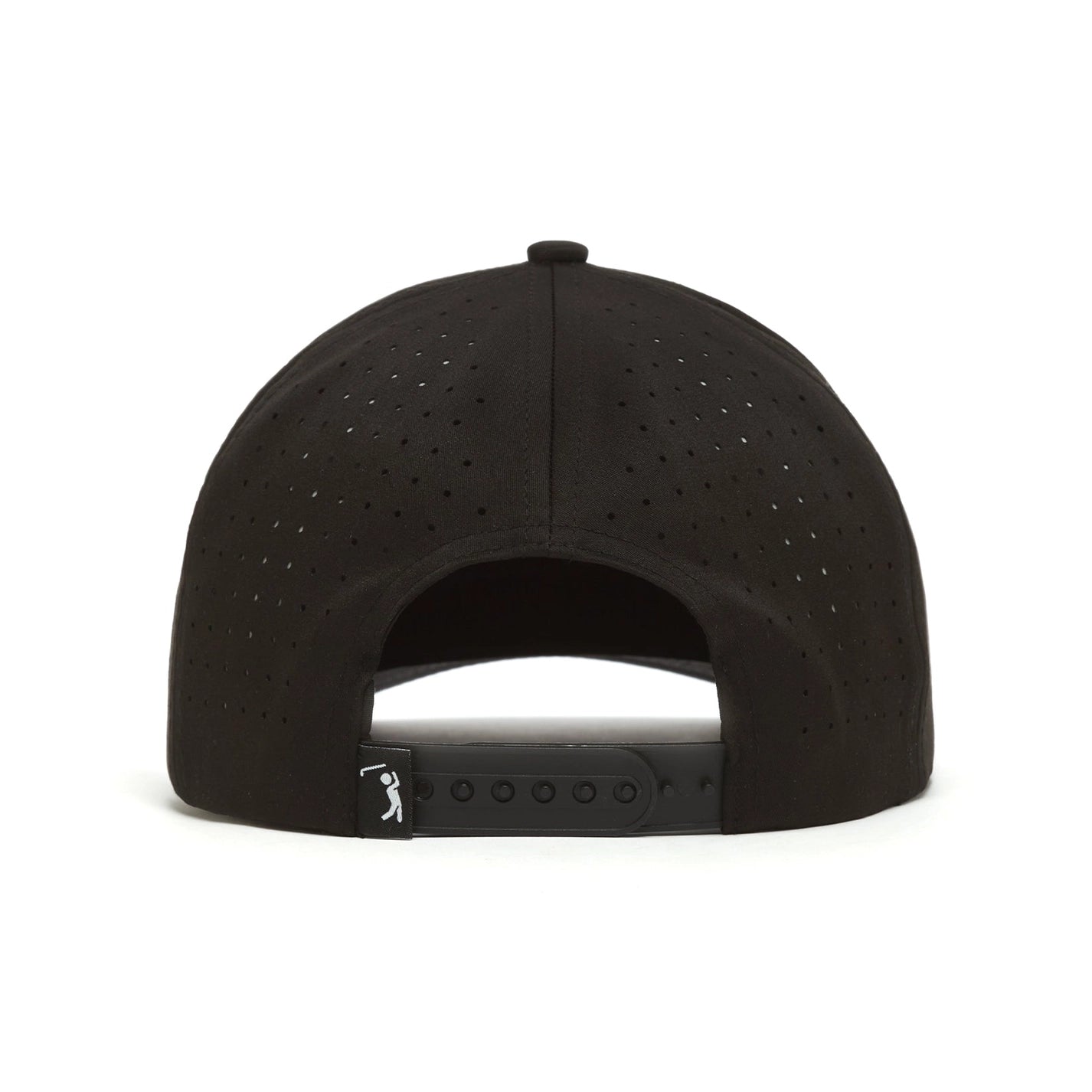 * Poly/Spandex blend performance material * Sweat stain resistant * Custom interior lining * Perforated Back * Snapback